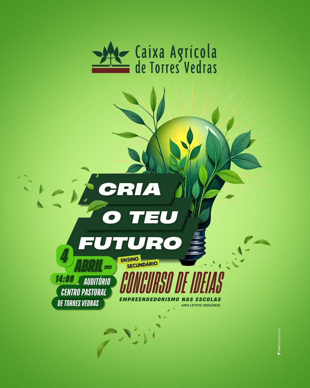 No dia 4 de abril, o Centro Pastoral de Torres Vedras será palco de ideias brilhantes e projetos inovadores que prometem transformar o futuro. "Cria o Teu Futuro", uma iniciativa da Caixa Agrícola de Torres Vedras, associada da Federação Agrimútuo, reunirá alunos do Ensino Secundário que aceitaram o desafio de desenvolver e apresentar projectos únicos, demonstrando que o futuro se constrói com visão, determinação e vontade de fazer a diferença.