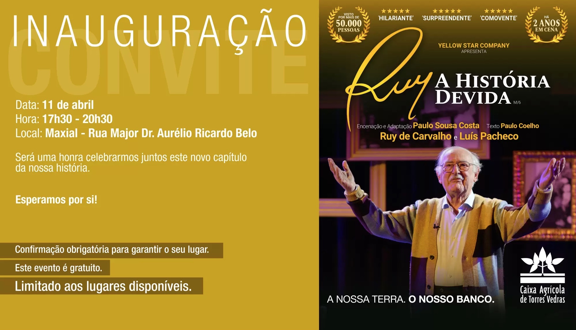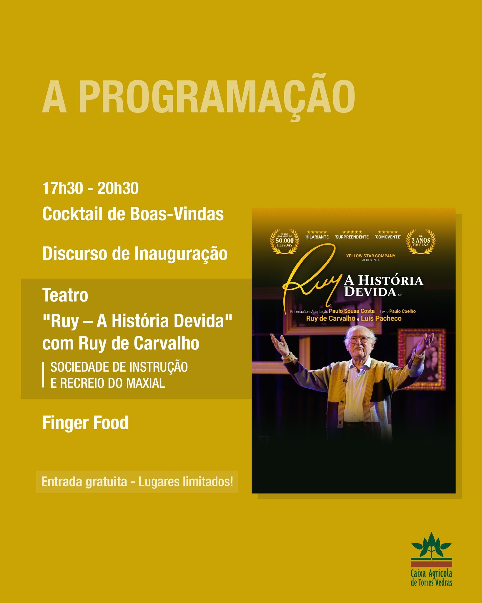 Para tornar este momento especial, o evento contará com a peça de teatro "Ruy A História Devida", interpretada por Ruy de Carvalho, uma referência do teatro em Portugal. O mesmo irá partilhar histórias inéditas da sua longa e inspiradora carreira. Histórias de amor, histórias de humor e até mesmo histórias para emocionar.