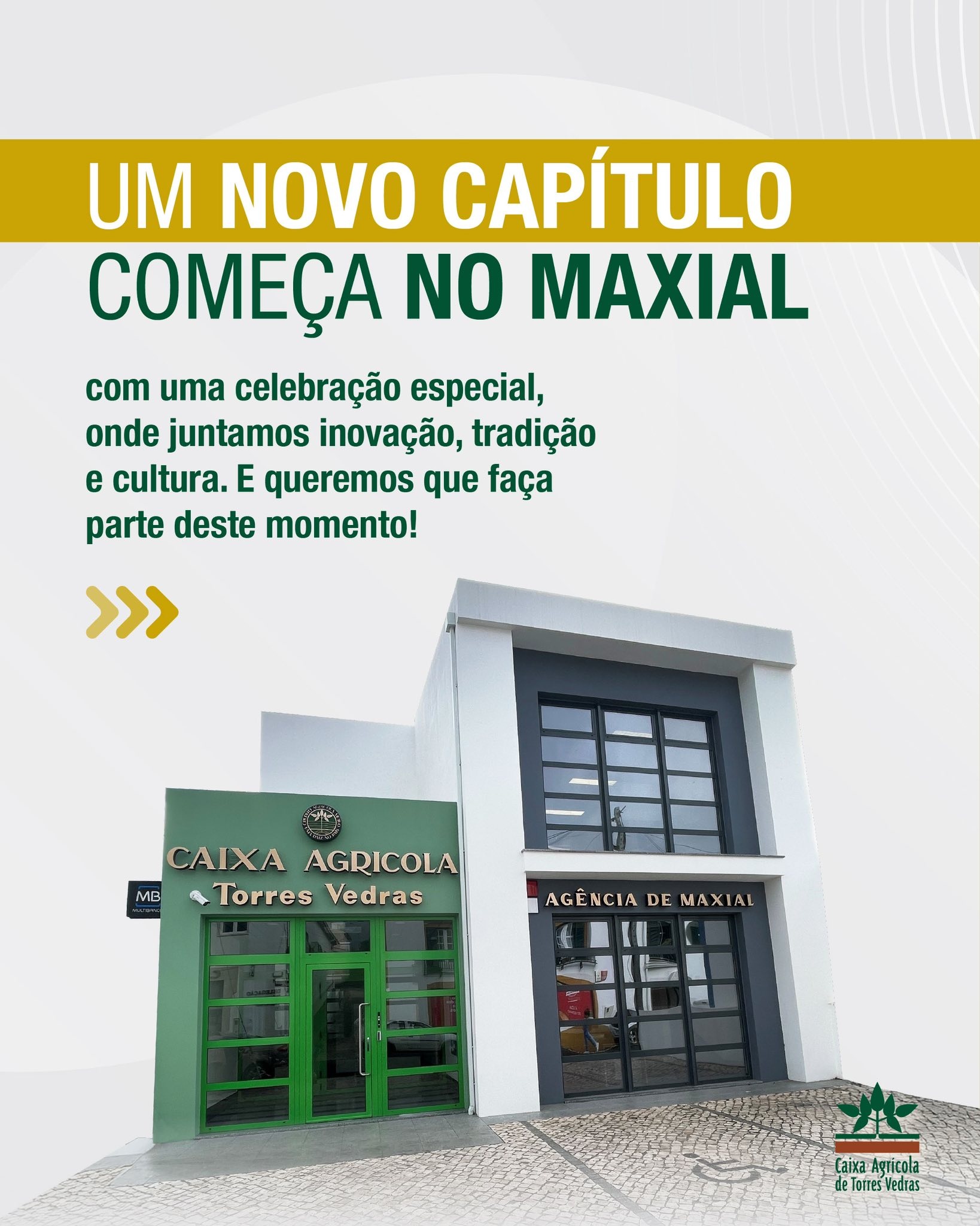 A Caixa Agrícola de Torres Vedras, associada da Federação Agrimútuo, convida a comunidade a participar na inauguração das novas instalações da sua agência do Maxial, no próximo dia 11 de abril, a partir das 17h30.