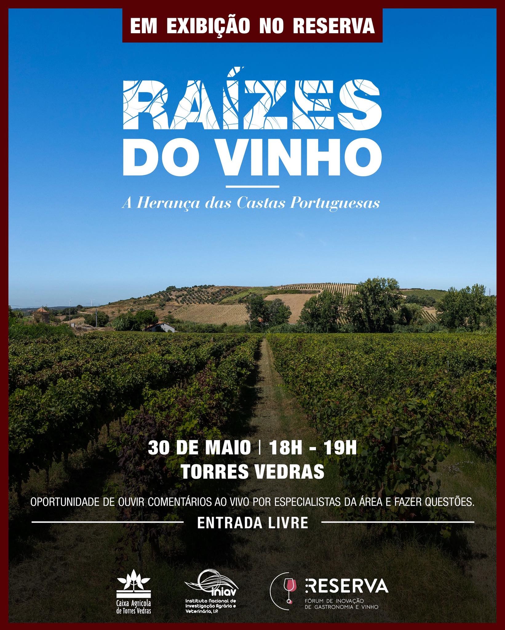 No próximo dia 30 de maio, às 18h, a Caixa Agrícola de Torres Vedras, associada da Federação Agrimútuo, estará presente no RESERVA – Fórum de Inovação de Gastronomia e Vinho, com uma tertúlia dedicada à série RAÍZES DO VINHO.